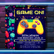 Personalize seu próprio convite de aniversário temático de jogadores com este design colorido.