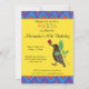 Este design colorido inspirado pela arte folclórica mexicana apresenta um corvo com marcas intricadas multicoloridas segurando uma rosa vermelha em seu bico. Os designs detalhados no corvo são feitos para se assemelharem aos que estão em carvas pintadas de animais Oaxacanos chamadas alebrijes. O corvo parece maior no verso do convite. Ambos os lados do convite têm uma borda colorida, festiva, superior e inferior e um fundo amarelo vibrante e otimista.