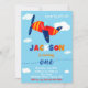 Convite de aniversário de avião Convite de avião Vintage para meninos e meninas Para uma festa de pé e fora convidem o convite de moscas do Tempo. O convite de aniversário para o primeiro aniversário de uma criança apresentando avião e algumas nuvens no céu azul ao redor. Este simples cartão de convite moderno, neutro em termos de gênero, é perfeito para o primeiro aniversario! Basta editar esta modelo para fazer seu próprio convite!