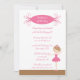 Este convite para festas de aniversário 5x7 tem um tema de balé bonito. Há uma bailarina de cabelos castanhos no fundo com uma faixa escura cor-de-rosa no topo. Você pode personalizar facilmente as informações de sua parte no meio. Estúdio de Cacau