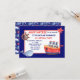 Este é um design brilhante e colorido de crianças com um tema náutico e oceânico. Na frente está um barco colorido na parte inferior direita, com uma baleia, uma roda de navio, e uma estrela nos cantos opostos. Seu texto personalizado está vermelho e azul correspondente em branco e está bordado em azul marinho. A parte de trás do convite tem um padrão de imagens do oceano.