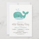 Convite de aniversário de baleia náutica. Convidar apresenta baleia azul verde-lacrimogênea.