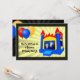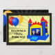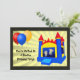 Celebre a sua festa de aniversário de salão com estes convites de festas festivos e coloridos. Excelente para crianças, adolescentes fazem festa de casa. Design apresenta fundo amarelo com quadro preto, ilustração da casa de salto em amarelo, azul e vermelho e três balões. Personalize com seu texto na frente e atrás.