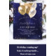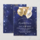 Um convite moderno, na moda e glamouroso para uma festa de aniversário de 21 ruas (ou qualquer idade). Um fundo azul marinho, decorado com faíscas douradas azuis e falsas e balões ouros. A cor azul é irregular. Personalize e adicione seu nome e detalhes da festa.