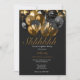 convite de aniversário de balões Dourados pretos