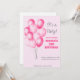 Convite de aniversário de balões rosa para raparig