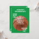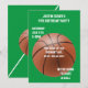 Convite de aniversário verde, com gráficos da bola de cesto marrom. Personalize o texto branco para a festa de aniversário desportiva do seu filho. Estão disponíveis suprimentos de partes correspondentes.