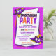 Celebrar uma festa temática de Halloween spooktacular com estes convites retrorados da década de 90 com personagens de morcegos, cores brilhantes e padrões ousados. Os convites são personalizáveis para incluir a data, a localização, o RSVP, os detalhes e muito mais do seu partido. Os convites podem ser usados para festas divertidas para crianças e famílias que celebram o Halloween ou para aniversários fofos e temáticos. O design apresenta com destaque o "PARTIDO SPOOKTACULAR" em texto ousado e atraente, garantindo que seus convidados saibam que estão dentro por um bom tempo!