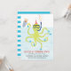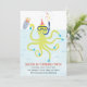 Um convite de aniversário de criança apresentando um cupcake, polvo.