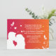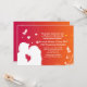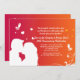 Um convite lindo com a silhueta branca de um casal se beijando contra um fundo de laranja a vermelho-chama com borboletas brancas e espirais abstratas. Muito adequado como anúncio de noivado, aniversário, save the date e mais.