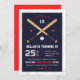 Batter Batter! Convide seus amigos para passar por sua festa de aniversário temática de beisebol com esses convites super legal com cores vermelha, branca e azul e gráficos de taco e bola de beisebol.