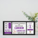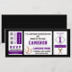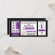 Um convite para ingressos divertido perfeito para sua próxima festa de beisebol! Este ingresso de beisebol é roxo e preto para o seu time favorito.