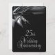 Convites de aniversário de casamento preto únicos para uma recepção / festa de 25 anos de casamento. Frente e verso preto com texto prateado no verso dando um visual sofisticado a este convite de aniversário comemorativo.
