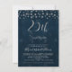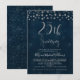 Este convite de aniversário de bodas de 25 anos apresenta um cabeçalho de caligrafia em prata falsa e alguns pontos decorativos no topo. O fundo é uma imagem texturizada azul escuro. Este convite de aniversário de bodas de 25 anos com folha de prata falsa está pronto para ser personalizado. O modelo é muito simples de editar.