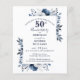 Este convite de aniversário de bodas de 50 anos azul-marinho elegante pode ser personalizado com suas informações em tipografia moderna. Criado por Thisisnotme©