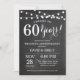Convite de Aniversário de Bodas de 60 Anos. Fundo de Quadro de Giz. Luzes de Corda. Preto e Branco. 1º, 2º, 3º, 4º, 5º, 10º, 15º, 20º, 25º, 30º, 35º, 40º, 45º, 50º, 55º, 60º, 65º, 70º, 75º, 80º, Qualquer Ano. Aniversário de Adulto. Festa de Aniversário de Homem ou Mulher. Para personalização adicional, clique no botão "Personalize" e use nossa ferramenta de design para modificar este modelo.