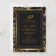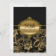 Convite de Aniversário. Padrão floral dourado e preto com laço de joia. Exclusivo Zazzle. Personalize com seus próprios detalhes. POR FAVOR, NOTE que todas as imagens são planas! Elas NÃO contêm Diamantes ou Joias reais!!