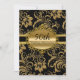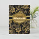 Convite de Aniversário. Padrão floral dourado e preto com laço de joia. Exclusivo Zazzle. Personalize com seus próprios detalhes. POR FAVOR, OBSERVE que todas as imagens planas! Elas NÃO contêm Diamantes ou Joias reais!!