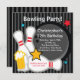 Comece a festa de boliche com a convite de aniversário de boliche para uma festa de aniversário de criança. Nosso convite para boliches fofinhos contém pinos de boliche e uma bola de boliche em um fundo preto e cinza com estrelas vermelhas e azuis... super fofo com uma coordenação de volta. Apenas personalize com sua informação e você está pronto para ir! Itens correspondentes, incluindo selos de postagem de aniversário, adesivos de favoritos, cartões de agradecimento e obrigado que você também está disponível em nosso compro. ©Babystar Designs