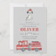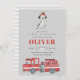 Adorável bombeiro, o convite de aniversário com caminhão e cão.