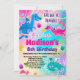 Convite de aniversário do tema do dragão feminino em cores bonito do arco-íris.
