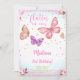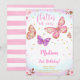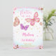 Convite de Aniversário de Borboleta Aquarela Rosa