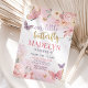 Aproveite este convite de aniversário para borboletas imprimíveis! É a maneira perfeita de convidar convidados para a festa de aniversário temática da borboleta da sua menina. Este convite para borboletas de aquarela é projetado com borboletas rosas e roxas, flores, brilho e texto de script.