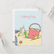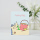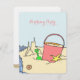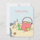 Cartão menor para convidar amigos para uma festa de aniversário de praia - ou qualquer tipo. A design de arte original tem uma pilha e uma pá com castelo de areia na borda do mar. O texto cor-de-rosa é fácil de personalizar para o aniversário ou festa de qualquer garota.