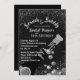Convites da festa de aniversário do champanhe preto e prateado - Lê 'Brunch & Bubble' no topo da lista de cores moderna, prateada, com um elegante e impressionante. Personalizado com o nome e evento do convidado de honra abaixo. O brilho falso prata borda o topo e o fundo contra um fundo preto de carvão mate. A parte inferior tem folha de prata preta e falso, garrafa de champanhe vindima a enfiar a sua rolha com folha falso, bolhas de champanhe prateado. As informações personalizadas de brunch de aniversário, incluindo detalhes de RSVP, são impressas em letras brancas abaixo à esquerda. Voltar tem um fundo preto, que pode ser alterado para qualquer cor que você preferir. convites de aniversário adultos elegantes, prontos para serem personalizados com seus próprios detalhes. Nós temos coordenadores, guardanapos de papel para café e outros convites para brunch no nosso compro Zazzle.com/angela65*.