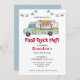 Convite à festa de aniversário de Truck, Comida divertida, com pintura manual de aquarelas e de linhas, Você pode usar este convite para Aniversário, Graduação, Festa de Bloco.