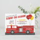 Convites de festas de aniversários bonitos de caminhão de bombeiro. Azul e Vermelho com Aquarela. Fácil de personalizar o design e o seu texto personalizado.