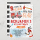 Soe o alarme e pegue seu equipamento, o aniversário do seu bombeiro está aqui! Convide seus amigos para comemorar com este super quente convite de aniversário do Fire Truck!