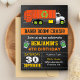 Incomode seus hóspedes com esta legal festa de aniversário de lixo que convida com um caminhão de lixo laranja com tipografia moderna contra fundo de quadro. Basta adicionar os detalhes do seu evento neste modelo fácil de usar para torná-lo um convite de tipo único. Sacudir a placa para revelar um padrão de listras amarelas e pretas vibrantes na parte traseira da placa.