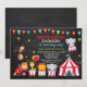 Convite de aniversário de Carnaval com foto personalizada. Menino 1rua Primeiro Convite de Aniversário. Festa do Circo. Fundo Chalkboard. segundo 1rua 5 3 4º 6 7 8º 9º 9º 11 10º 12 de 13 14 15, em qualquer idade. Para mais personalização, clique no botão "Personalizar" e use nossa ferramenta de design para modificar este modelo.