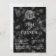 Um convite de aniversário de casamento com um fundo preto com uma centena de bolhas prateadas bokeh flutuando no ar, com uma bolha bokeh ampliada anunciando, Parabéns pelos 15 Anos no topo da página. Seus primeiros nomes com um e comercial ficam abaixo em uma fonte serifada branca animada com os detalhes abaixo em uma fonte bloco pequena, branca e facilmente legível.