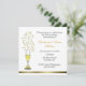 Convite de aniversário de casamento elegante, feito com cartão reciclado branco com texto preto e destaques em dourado. Um copo de champanhe, com um laço dourado doce no caule, tem estrelas cintilantes saindo do topo do copo, e uma faixa em tom dourado na parte inferior finaliza este convite elegante pronto para você personalizar para sua festa. Se preferir excluir o texto para o RSVP, você pode fazê-lo. Cartões de resposta RSVP correspondentes estão disponíveis.