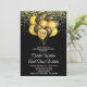 Um convite de aniversário de casamento de 10 anos elegante e festivo com dourado em preto, apresentando balões e confetes dourados e pretos com tipografia em script branco contrastada com tipo sans serif clássico. Este convite tem um toque festivo com contraste ousado e estilo moderno. personalize para qualquer ano de aniversário de casamento.