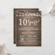 Convite de Aniversário de Casamento de 10 Anos. Fundo de Madeira Rústica. Luzes de Corda. Vintage Retro. 1º, 2º, 3º, 4º, 5º, 10º, 15º, 20º, 25º, 30º, 35º, 40º, 45º, 50º, 55º, 60º, 65º, 70º, 75º, 80º, Qualquer Ano. Aniversário Adulto. Festa de Aniversário de Homem ou Mulher. Para personalização adicional, clique no botão "Personalize" e use nossa ferramenta de design para modificar este modelo.