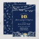 Convite de Aniversário de Casamento Navy & Gold Night Garden. Tipografia Dourada Bonita, Luzes de Corda e Coroa de Flores.