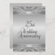 Convites elaborados de aniversário de casamento de prata para uma recepção / festa de casamento de 25 anos. Frente e verso em prata com texto preto no verso dando um visual sofisticado a este convite de aniversário único.