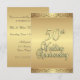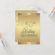 Elaborados convites de aniversário de casamento dourados para uma recepção / festa de 50 anos de casamento. Frente e verso dourados com texto marrom no verso, dando um visual sofisticado a este convite de aniversário único.