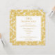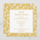 Este convite de aniversário de casamento de 50 anos em forma quadrada apresenta uma área de texto branca com uma borda dourada e um fundo com padrão de pássaro, floral e borboleta em cor dourada e branca. O verso do convite apresenta o mesmo padrão e uma área quadrada dourada no meio que serve como fundo para os monogramas do casal. Este convite de aniversário de casamento de 50 anos dourado está pronto para ser personalizado e é adequado como um convite de aniversário de casamento de 50 anos semiformal ou formal.
