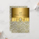 Convite de Aniversário. Damask dourado e prateado com jóia pérola e laço. Exclusivo Zazzle. Personalize com seus próprios detalhes. POR FAVOR, OBSERVE que todas as imagens planas! Elas NÃO têm Diamantes ou Jóias reais!!