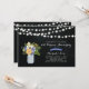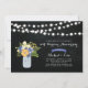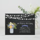 Um convite de aniversário de casamento rústico elegante com jarra de mason e buquê de flores em um fundo de quadro negro.
