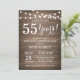 Convite de Aniversário de Casamento de 55 Anos. Fundo de Madeira Rústica. Luzes de Corda. 1º, 2º, 3º, 4º, 5º, 10º, 15º, 20º, 25º, 30º, 35º, 40º, 45º, 50º, 55º, 60º, 65º, 70º, 75º, 80º, Qualquer Ano. Aniversário Adulto. Festa de Aniversário de Mulher ou Homem. Para personalização adicional, clique no botão "Personalizar" e use nossa ferramenta de design para modificar este modelo.