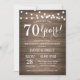 Convite de Aniversário de Casamento de 70 Anos. Fundo de Madeira Rústica. Luzes de Corda. 1º, 2º, 3º, 4º, 5º, 10º, 15º, 20º, 25º, 30º, 35º, 40º, 45º, 50º, 55º, 60º, 65º, 70º, 75º, 80º, Qualquer Ano. Aniversário de Adulto. Festa de Aniversário de Homem ou Mulher. Para personalização adicional, clique no botão "Personalizar" e use nossa ferramenta de design para modificar este modelo.