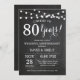 Convite de Aniversário de Casamento de 80 Anos. Fundo de Quadro Negro. Luzes de Corda. Preto e Branco. 1º, 2º, 3º, 4º, 5º, 10º, 15º, 20º, 25º, 30º, 35º, 40º, 45º, 50º, 55º, 60º, 65º, 70º, 75º, 80º, Qualquer Ano. Aniversário de Adulto. Festa de Aniversário de Homem ou Mulher. Para personalização adicional, clique no botão "Personalizar" e use nossa ferramenta de design para modificar este modelo.