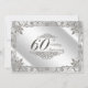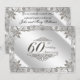 Um design de imagens Digitalbcon com uma cor de prata platina e tema de design flourish com uma variedade de imagens personalizadas, formas, padrões, estilos e fontes neste cartão de convite de aniversário de casamento de diamante dos 60 anos único. Este convite elegante e atraente vem completo com um design complementar no verso e letras de texto personalizadas para se adequar à sua ocasião especial.