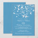 Convite de aniversário de casamento de pássaros de amor moderno e elegante apresenta um casal de pássaros de amor com um galho de árvore adornado com borboletas e corações sobre um fundo de listras azuis turquesa. Belo para uma celebração de aniversário de casamento de 25, 30, 40, 45, 50 ou 60 anos. Disponível em nossa loja em uma grande variedade de opções de cores modernas e elegantes