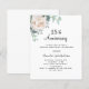 Um fundo branco. Decorado com uma flor branca, uma flor de pénia e um eucalipto verde de cor aquosa. Personalize e adicione seus nomes e detalhes. 1 folha = 1 convite impresso de borda a borda.